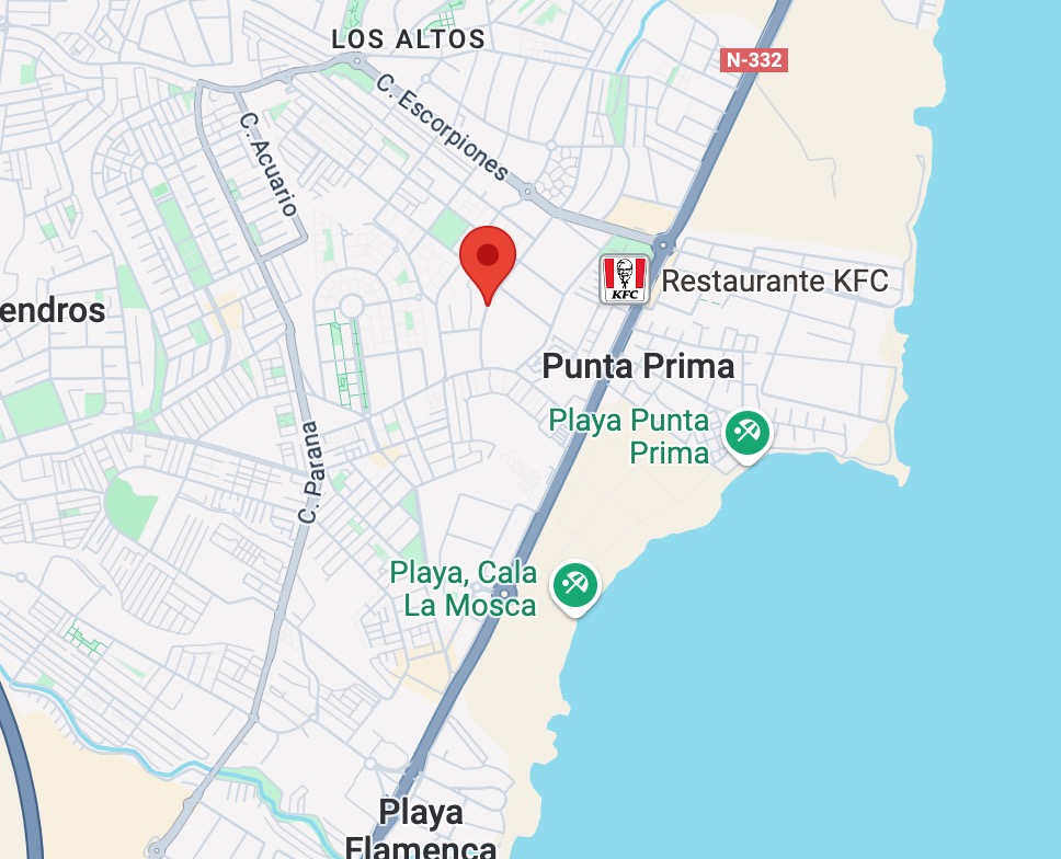 Punta Prima is een charmant kustgebied in het noordelijke deel van Orihuela Costa, net ten zuiden van Torrevieja aan de Spaanse Costa Blanca. Het staat bekend om zijn prachtige stranden, mediterrane klimaat en een verscheidenheid aan voorzieningen voor zowel inwoners als bezoekers. De belangrijkste attractie is Punta Prima Beach, een beschutte 234 meter lange strook fijn zand. Het strand is bereikbaar via trappen of een lift, waardoor het handig is voor gezinnen en mensen met mobiliteitsproblemen. Een pittoreske promenade loopt langs de kustlijn, biedt een schilderachtig uitzicht en verbindt Punta Prima met naburige stranden zoals Cala Piteras en Playa Flamenca. Punta Prima beschikt over verschillende eetgelegenheden met een prachtig uitzicht op zee. Met name Restaurante Punta Prima serveert sinds 1969 mediterrane gerechten, met een menu met verse zeevruchten en traditionele Spaanse gerechten. Een andere populaire plek is het Nautilus Restaurant, bekend om zijn uitgebreide menu en panoramische uitzicht op de Middellandse Zee.